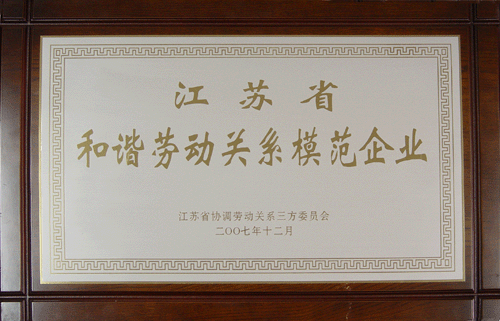 > 2007年度江苏省和谐劳动关系模范企业