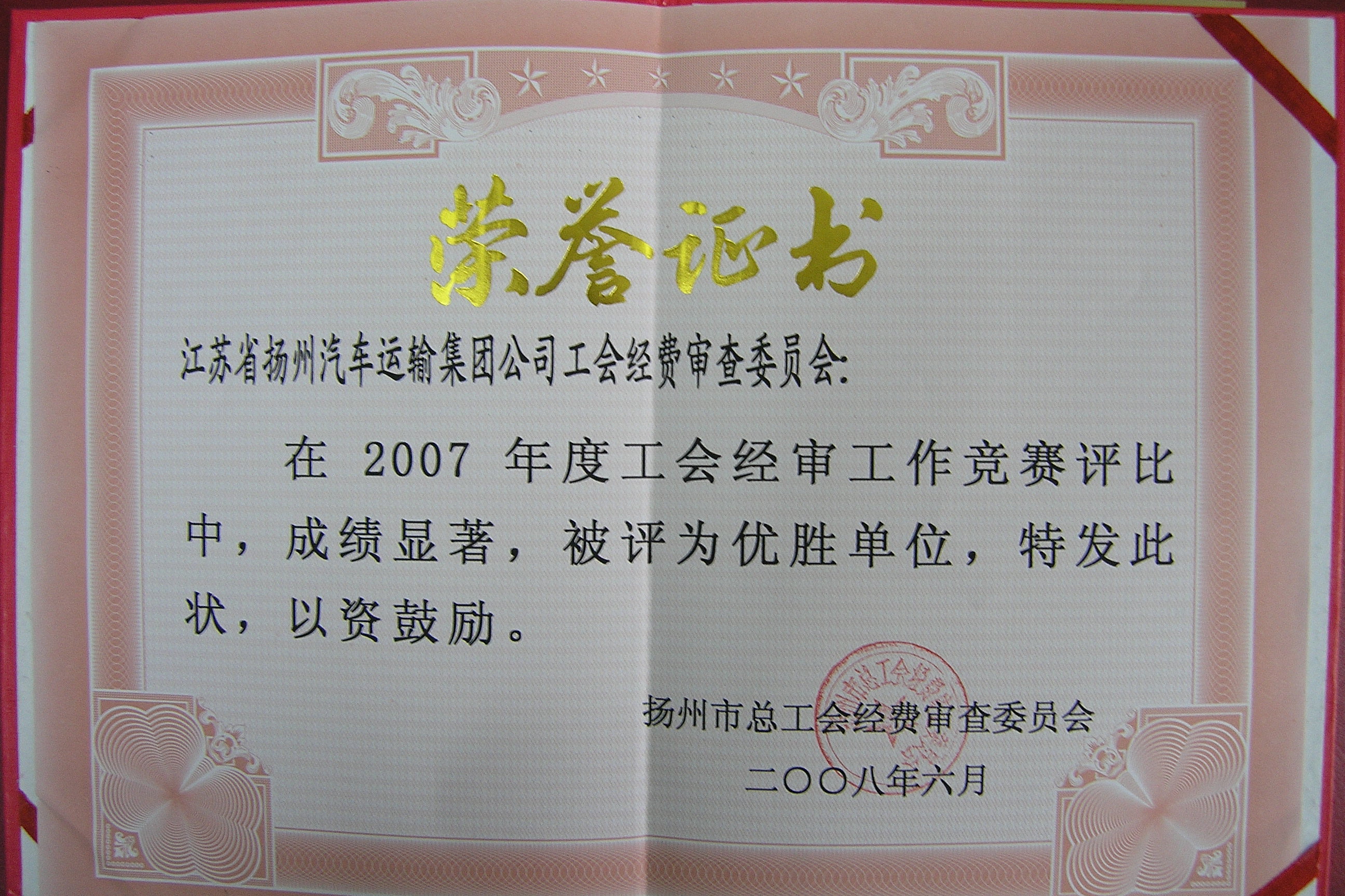 > 工会奖状