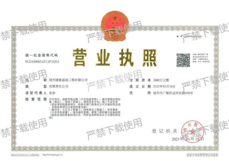 扬州捷能基础工程有限公司完成企业登记