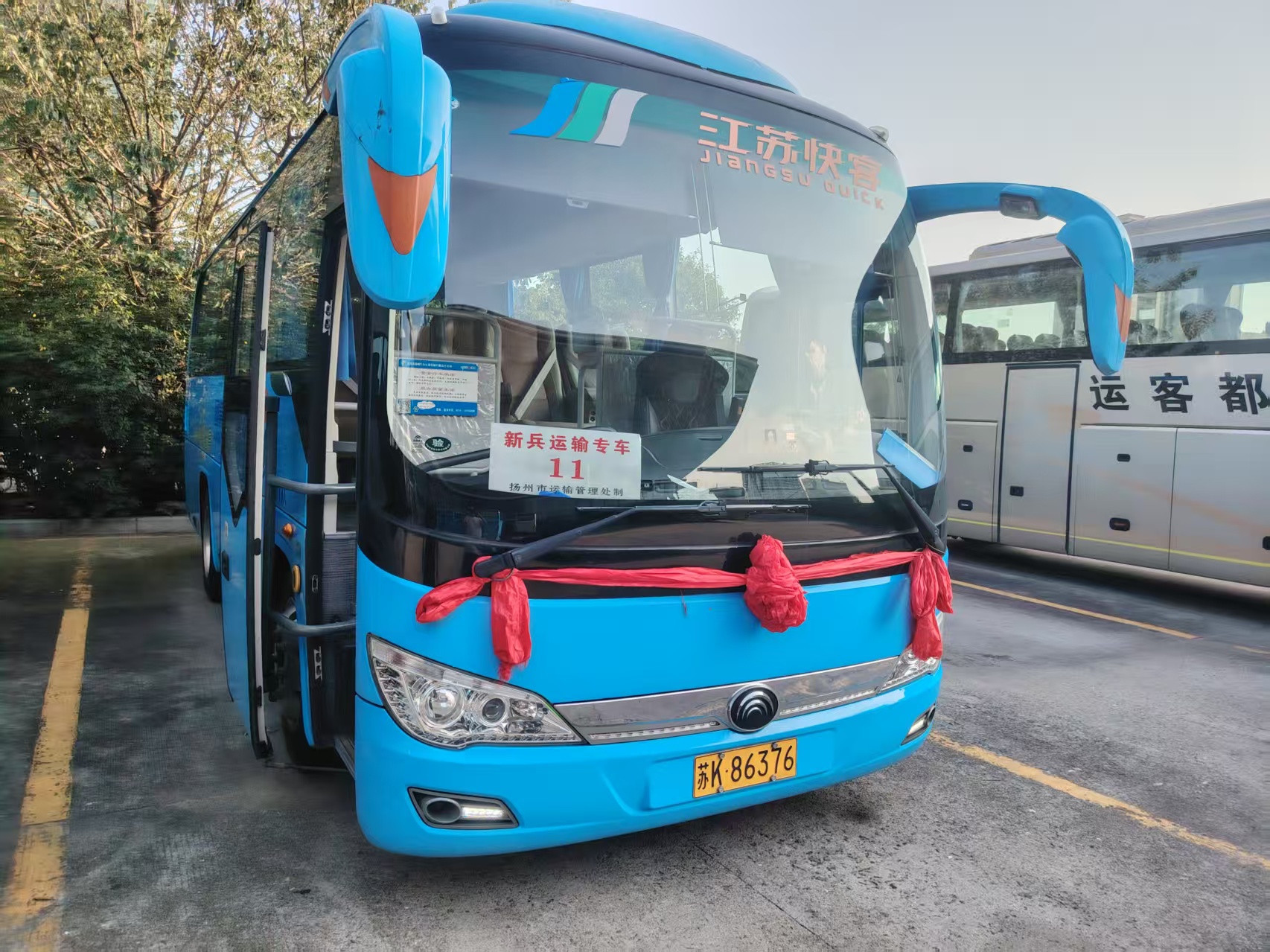 为确保运输任务顺利推进,扬汽集团提前谋划、周密安排,全面强化服务保障水平。从车辆筛选到人员调度,均严格执行高标准,精心选派车况优良、性能稳定的营运大巴,组建了一支经验丰富、技术过硬、熟悉路况的驾驶员团队,并对所有参与车辆进行了全面安全检测与清洁消杀。车上配备急救包、饮用水等应急物资,全力守护新兵旅途安全。出发仪式上,新兵战士精神抖擞、意气风发。扬汽集团工作人员主动协助搬运行李、核对信息,耐心引导登车,以热情周到的服务传递家乡的温暖与关怀。