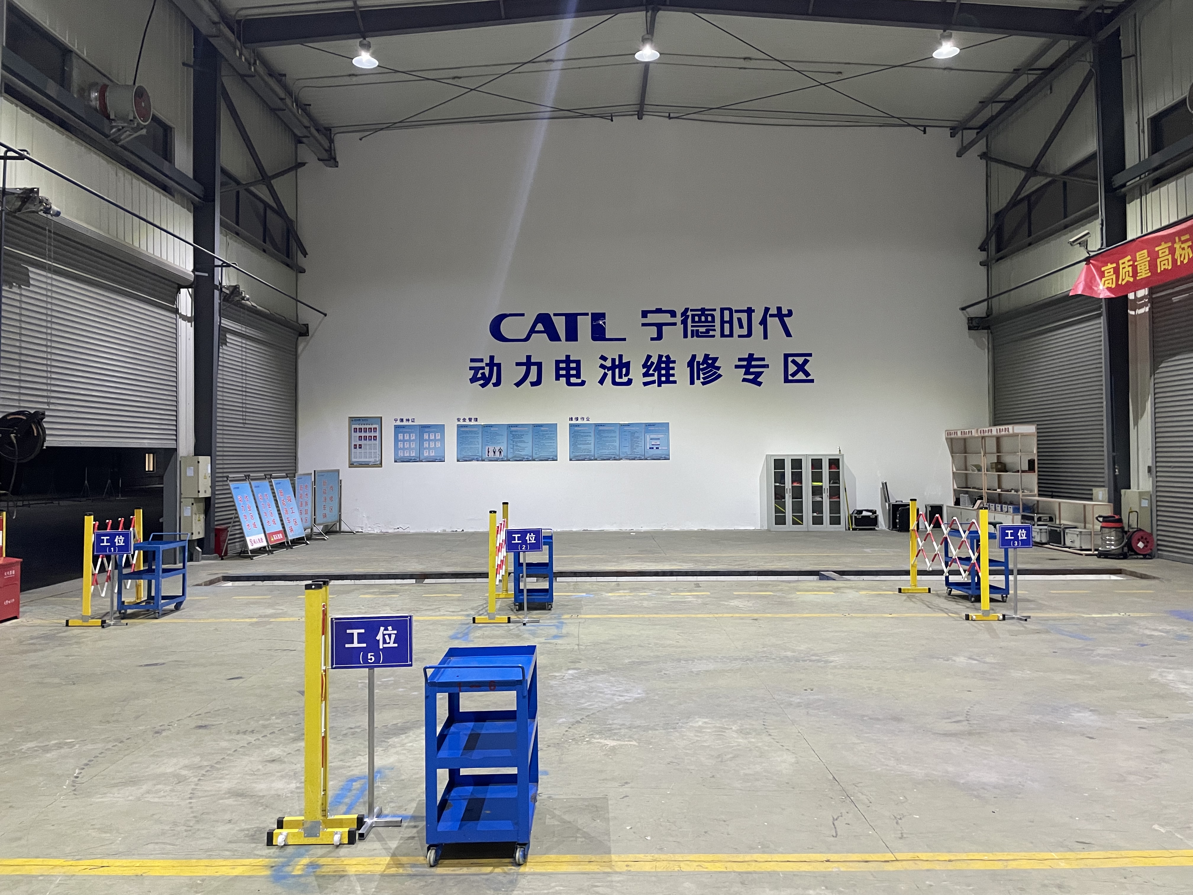 本次升级涵盖品牌形象、硬件设施与服务流程的全方位提升。修理厂全面启用了宁德时代统一的品牌标识与视觉系统,严格执行其服务标准,显著提升了品牌识别度与服务专业性。为精准应对新能源电池检测与维修的高标准要求,厂区特别引入了多通道锂电均衡仪、充放电机等一系列行业领先的专业设备,极大增强了在电池诊断、维护与更换等关键环节的作业精度与服务效率。同时,修理厂还专门规划并建设了“宁德电池服务专属场地”,设有独立的电池维修专区、新旧件存放区及专属维修工位,为客户带来更专业、更安心的服务体验。