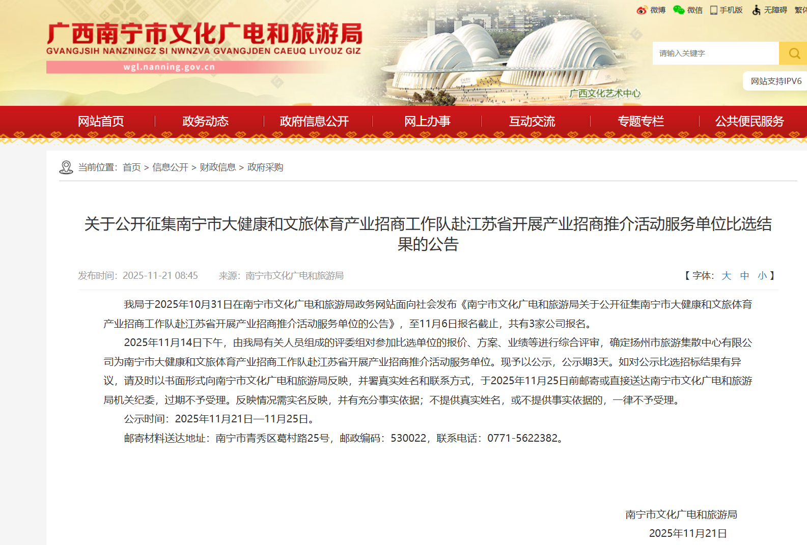 扬州旅游集散中心成功中标南宁文旅招商江苏推介活动服务项目
