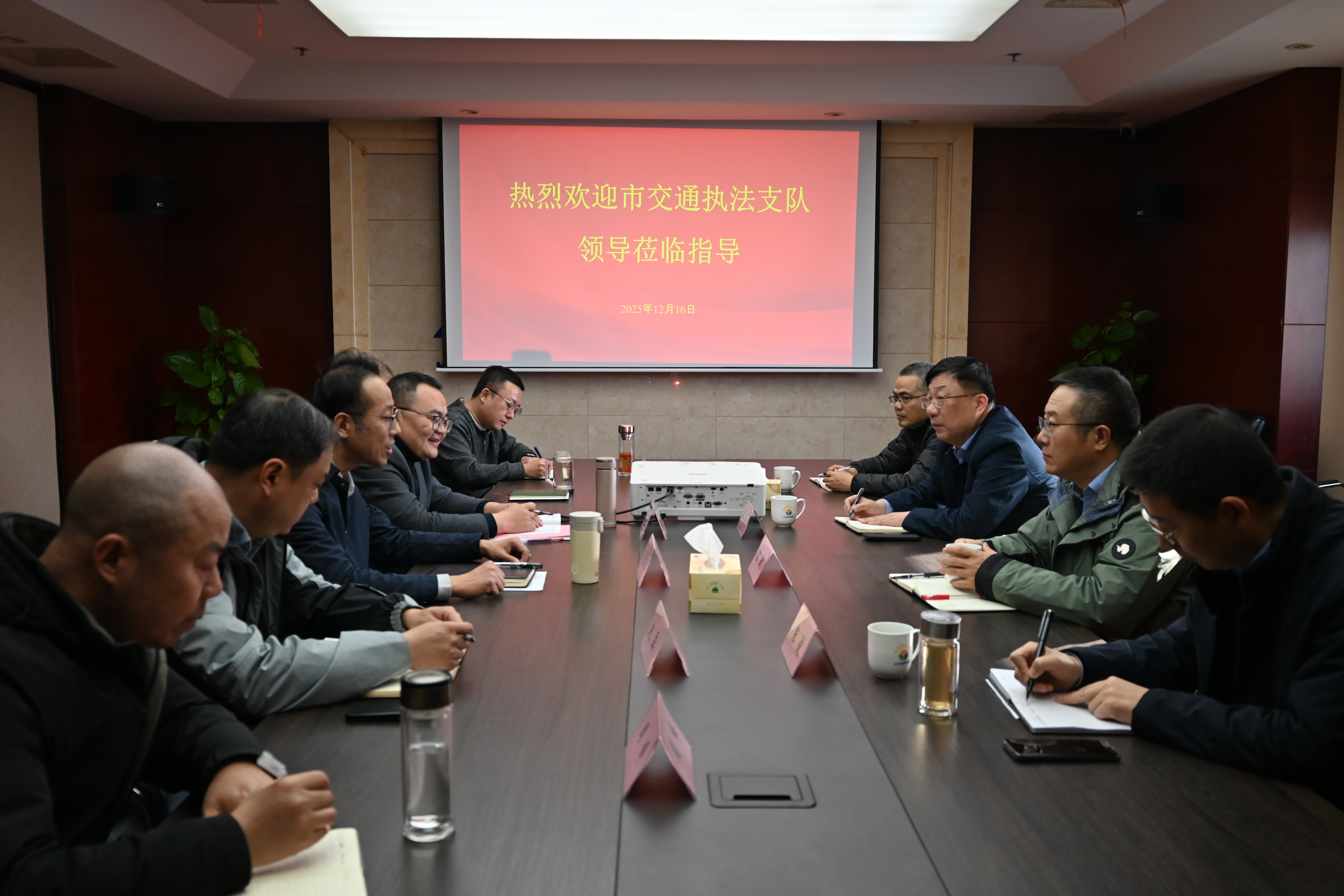 近日,市交通运输综合行政执法支队支队长姚军、副支队长吕斌、邓志飞、四大队大队长张俊等一行赴扬汽集团开展调研指导。市交通产业集团党委委员、副总经理李崇,扬汽集团党委书记、董事长万雷,副总经理徐建波、赵磊、刘旭亮参加调研。