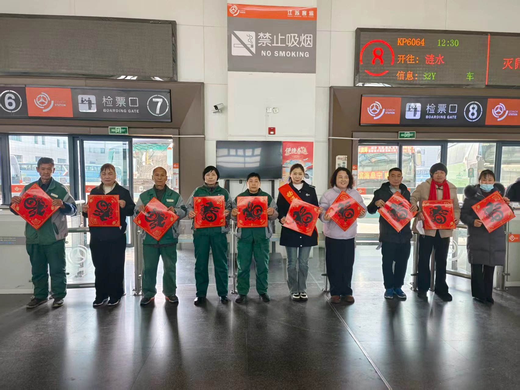 活动现场,暖意融融。交警二大队的民警与扬汽集团的工作人员穿梭在人群中,将一张张寓意吉祥的“福”字递到旅客手中,送去新春的第一缕祝福。与此同时,扬汽集团的志愿者们主动上前,帮助行动不便的老人提拎行李,引导旅客有序检票、候车,耐心解答问询,细致入微地守护着每一位旅客的出行体验。